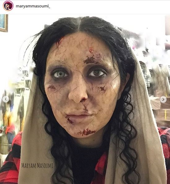 مریم معصومی بازیگر سینما و تلویزیون تصویری از گریم عجیب و ترسناکش در فیلم «ترانه» را در اینستاگرام منتشر کرد.