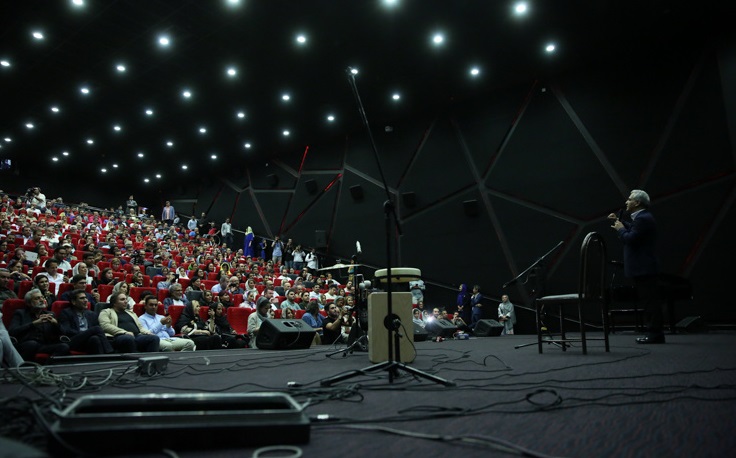 مهران مدیری در ابتدای برنامه با تشکر از حضور گسترده هنرمندان اظهار کرد:« این بزرگترین اکران خصوصی تاریخ سینمای ایران است.» وی همچنین با یادی از علی معلم، افشین یداللهی و عارف لرستانی، گفت خیلی دوست داشتم که این سه عزیز امشب در جمع ما بودند.وی همچنین اعلام کرد محمود کلاری به دلیل حضور در آمریکا نتوانست خودش را به این مراسم برساند و در ادامه با اشاره به حضور همایون شجریان، از حاضران خواست برای سلامتی استاد شجریان دعا کنند.