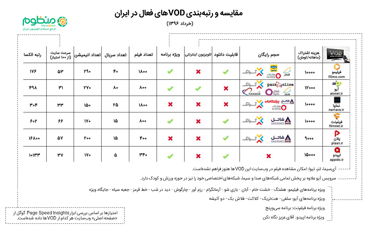 مقایسه VODهای فعال در ایران (خرداد 96)