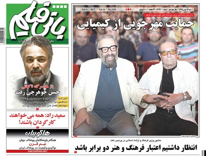 روزنامه بانی فیلم، شنبه 16 بهمن، شماره 3390: