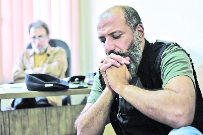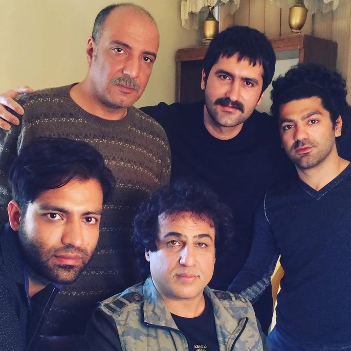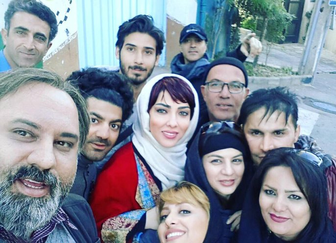 رامین راستاد در میان همکارانش در فیلم سینمایی «آزاد به قید شرط»
