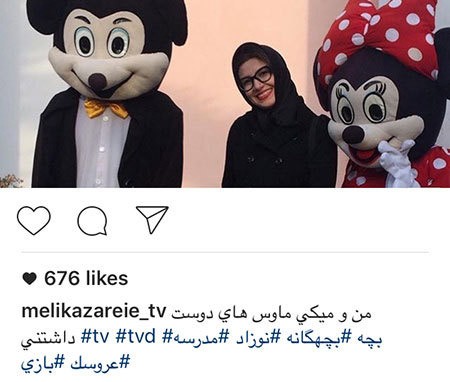 ملیکا زارعی در کنار دو تن از دوستان قدیمی اش، زوجِ هنرمند، آقا و خانمِ ماوس.