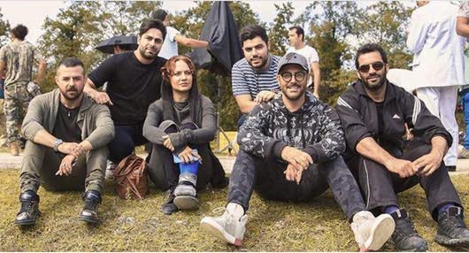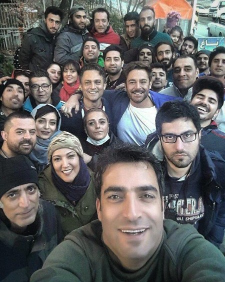 سلفی دسته جمعی مهناز افشار، محمدرضا گلزار، حسین یاری و هومن سیدی در پشت صحنه سریال