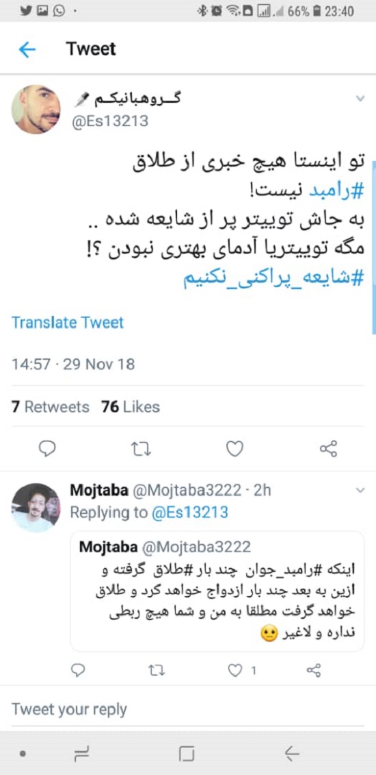 در توئیتر شایعات عجیبی علیه زندگی خصوصی مجری موفق تلویزیون رامبد جوان راه افتاده که البته بخشی از کاربران واکنشی اخلاقی به این شایعات نشان داده اند.
