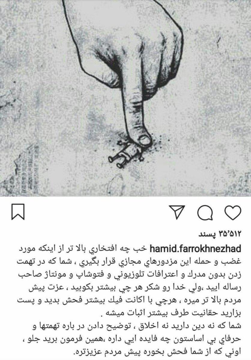 در ادامه فرخ نژاد دوباره واکنش نشان داد و پست دیگری را منتشر کرد: