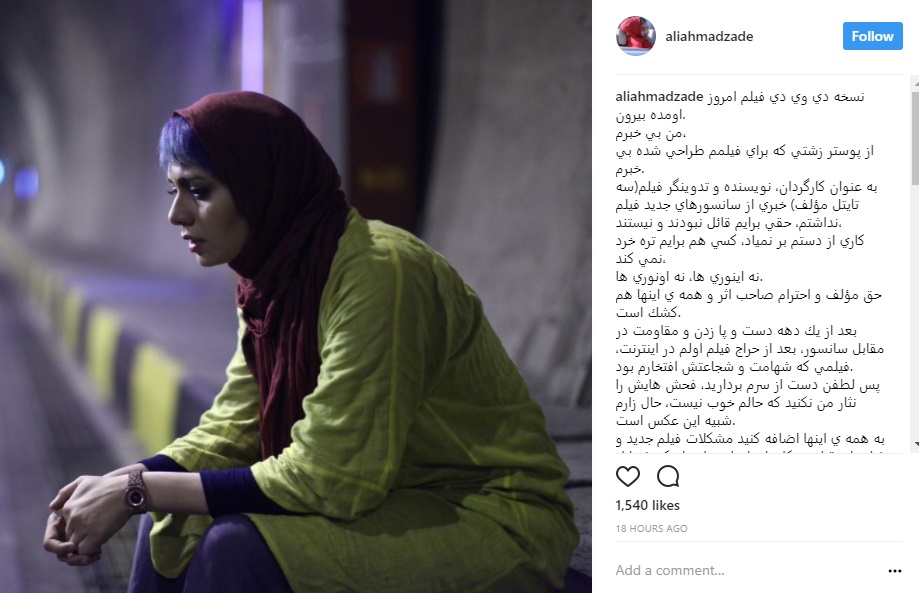 بعد از یک دهه دست و پا زدن و مقاومت در مقابل سانسور، بعد از حراج فیلم اولم در اینترنت، فیلمی که شهامت و شجاعتش افتخارم بود. پس لطفا دست از سرم بردارید، فحشهایش را نثار من نکنید که حالم خوب نیست.