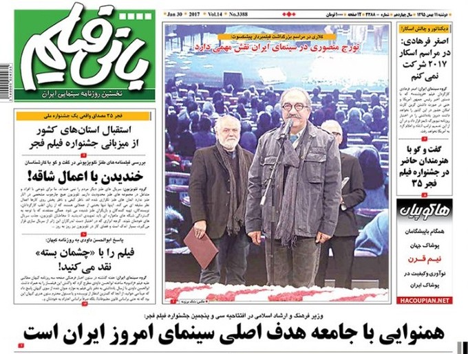 روزنامه بانی فیلم، دوشنبه 11 بهمن، شماره 3388: