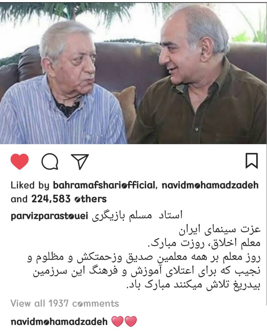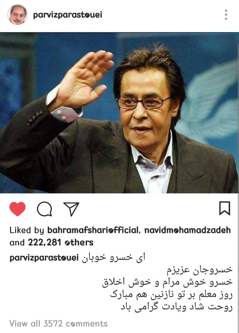 به گزارش منظوم؛ مرجع سینما و تلویزیون ایران، پرویز پرستویی در صفحه اینستاگرام خود چند پست مختلف را منتشر کرده و در آن از اساتید خود یاد کرده است: