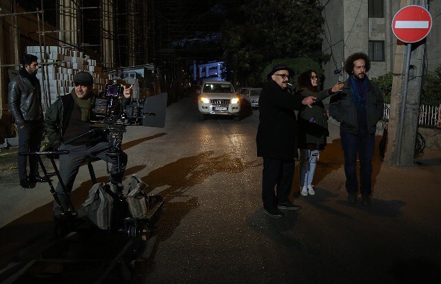 «ادامه فیلمبرداری "سراسر شب" از راست به چپ : سینا حجازی ، الناز شاکر دوست ، فرزاد موتمن ، محمد رضا سکوت . عکس : رامونا میریان»